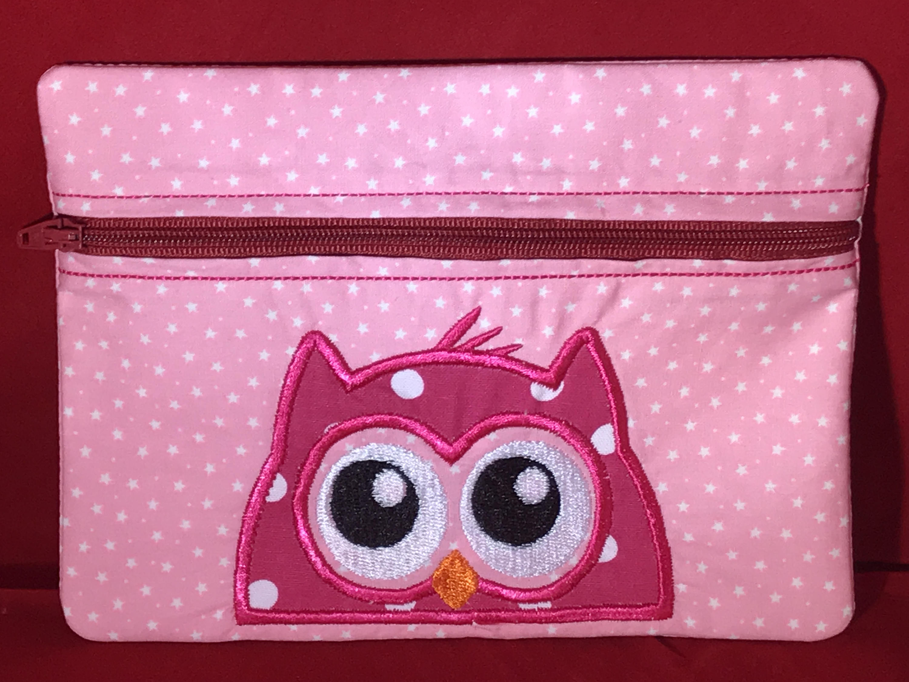 In the hoop owl applique fully lined zipper bag makeup bag ...